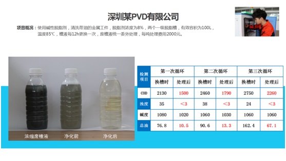 長隆科技的真空鍍/PCB/電鍍脫脂劑回用技術,專門針對真空鍍/PCB/電鍍行業的脫脂水進行回用,做到: