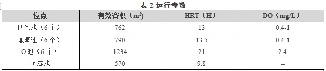根據貴司提供數據,舊系統目前處理水量為 1200 -1400m3/d,硝化液回流 190 m3/h,處理工藝為:格柵→調節池→氣浮→三級 A2O→中間水池→沉淀池→排放。運行參數如下: