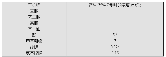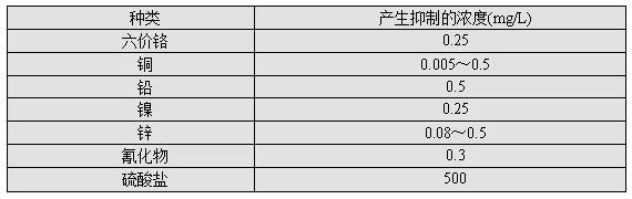 工業廢水成分復雜,其中重金屬、消毒劑、游離氨、含硫化合物、N雜環化合物、雙氰胺類化合物等均會對硝化作用產生抑制,濃度過高時甚至導致硝化菌死亡。部分抑制硝化作用的重金屬、有機物等濃度見下表: