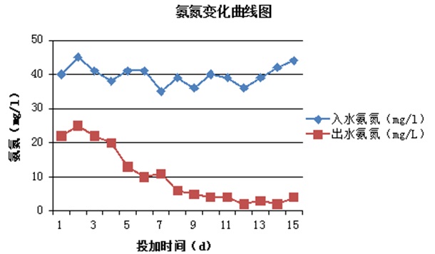 •水廠情況:處理量100方/天,生化系統采用‘水解酸化+兼氧+接觸氧化’工藝,氨氮出水30-50mg/L;